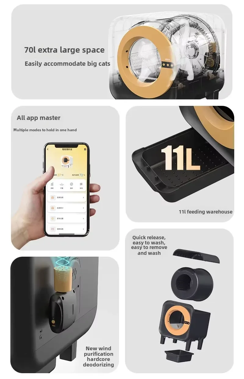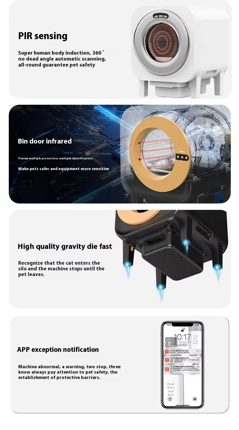 Múltipla proteção de segurança, vários sensores dentro do equipamento trabalham juntos para monitorar o status do equipamento em todos os momentos, dando aos gatos uma segurança mais abrangente